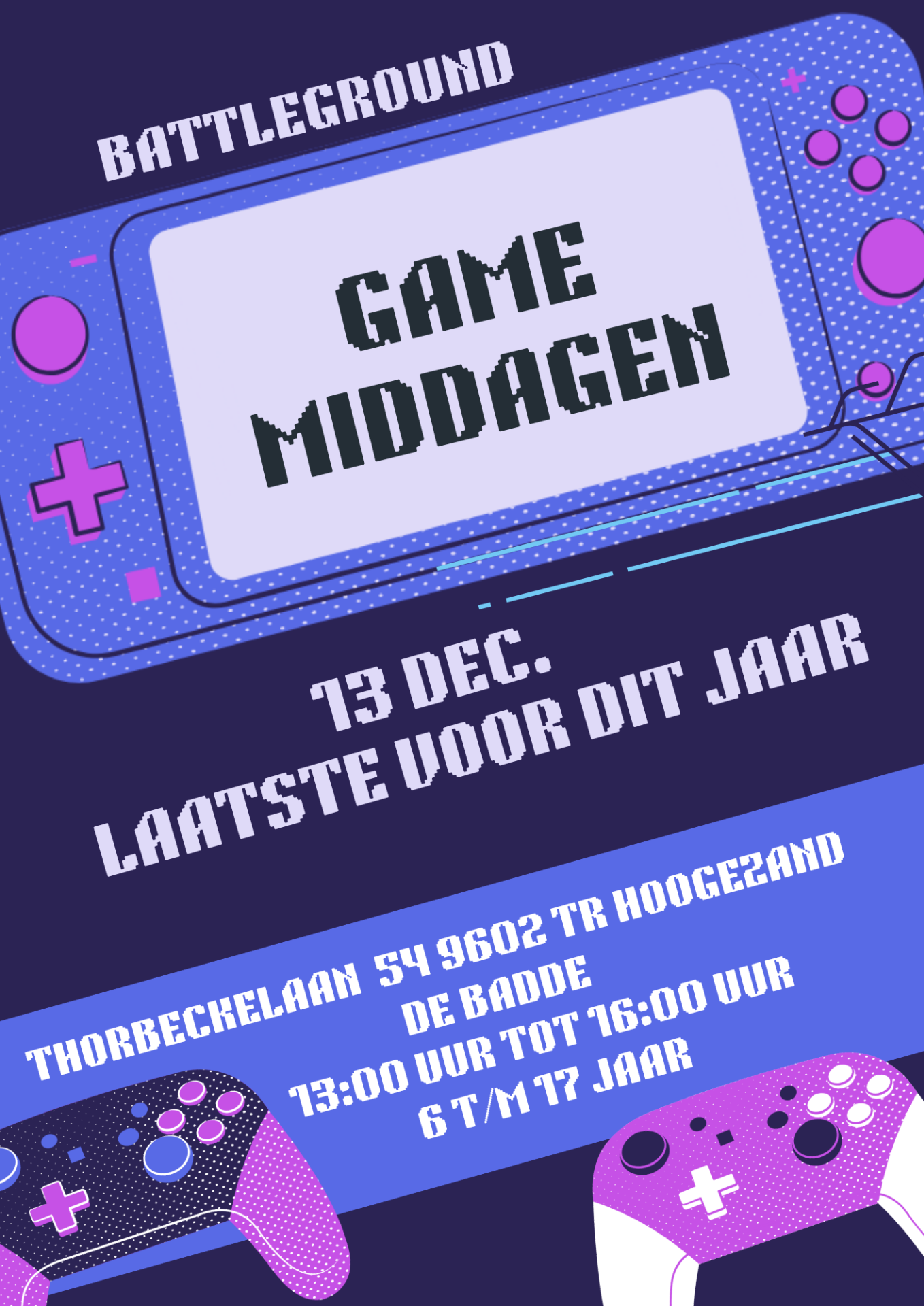 Helaas is de laatste dag van ons Game middag aan gebroken, zie de flyer voor de info M.V.G Team Battleground